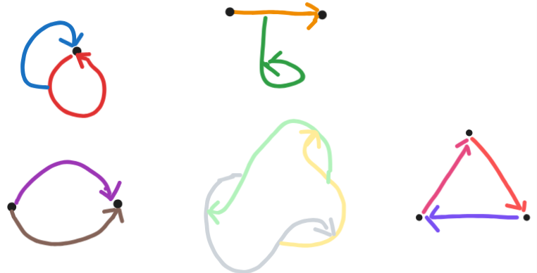 Remark 3: There's a variant of vertexless pure cycles that I like to call "keltic knots", where, if of any edge the sink is , the source of is .