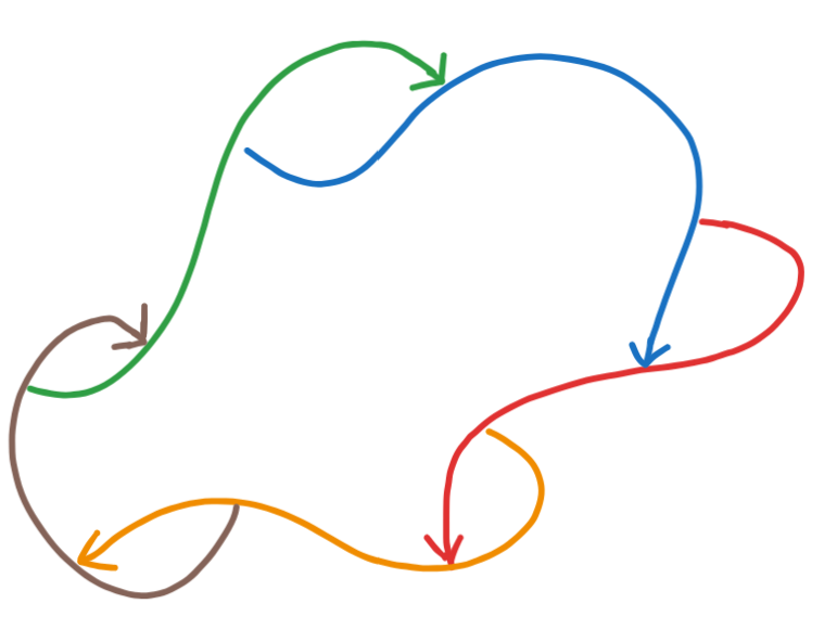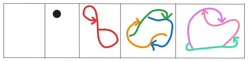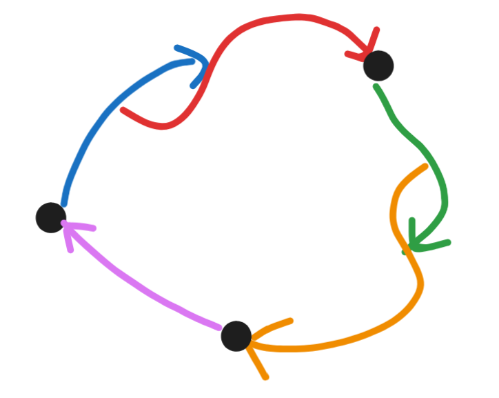 Remark 3: There's a variant of vertexless pure cycles that I like to call "keltic knots", where, if of any edge the sink is , the source of is . There's exactly one keltic knot with edges, and I find them pretty. They have nothing to do with knot theory, e.g. the 7₄ knot that sometimes appears in keltic iconography.