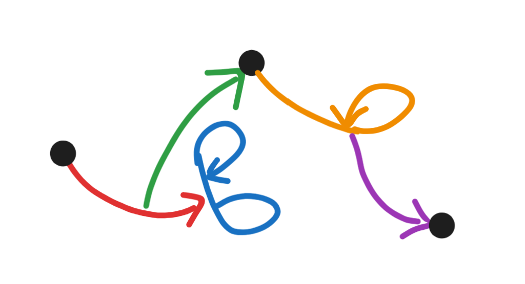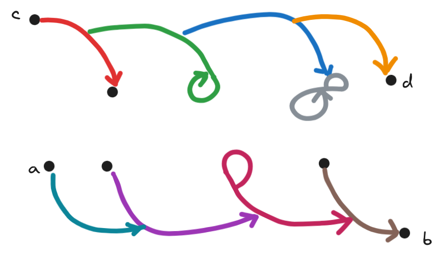 On a meditation retreat in 2022 I remembered a post by Scott Garrabrant and doodled the above image in my notebook, together with some other drawings of networks where edges can have edges as sources and sinks.